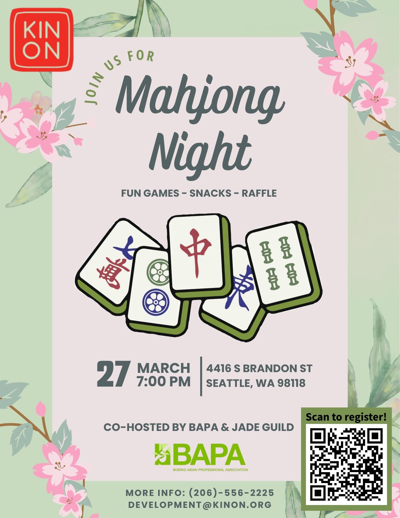 Celebrate the Spring season with an evening of Mahjong, laughter, and community! Join us on March 27 at 7:00 PM for a festive and FREE Spring Mahjong Night, co-hosted by the Boeing Asian and Pacific Association (BAPA) and Jade Guild.