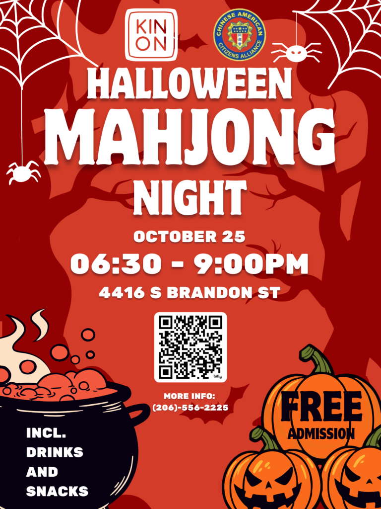 Mark your calendars for October 25th! Celebrate Halloween with Mahjong, food, and fun—completely FREE of charge! This special event is co-hosted by Chinese American Citizens Alliance (CACA) and Kin On, with volunteers from Microsoft joining us, bringing together community members and young professionals in a vibrant, spooky setting.