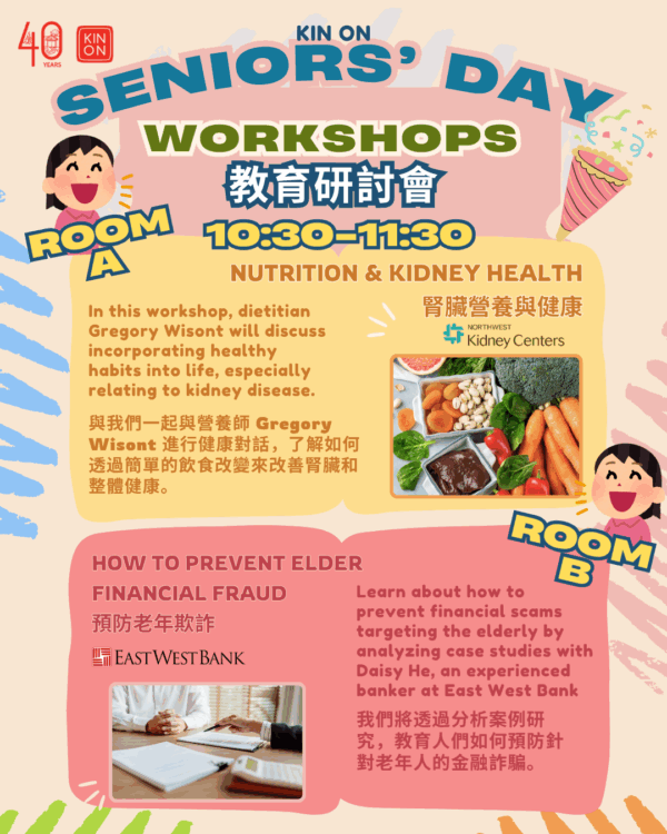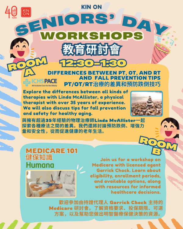 Join us for a special celebration honoring the wisdom and contributions of our senior community as we commemorate Kin On’s 40th Anniversary! This festive event brings together older adults, families, and community members for a meaningful day filled with cultural games and activities, live performances, health screenings, educational workshops, and valuable senior resources. Whether you’re here to connect with community services, enjoy entertainment, or participate in hands-on activities, there’s something for everyone to enjoy.